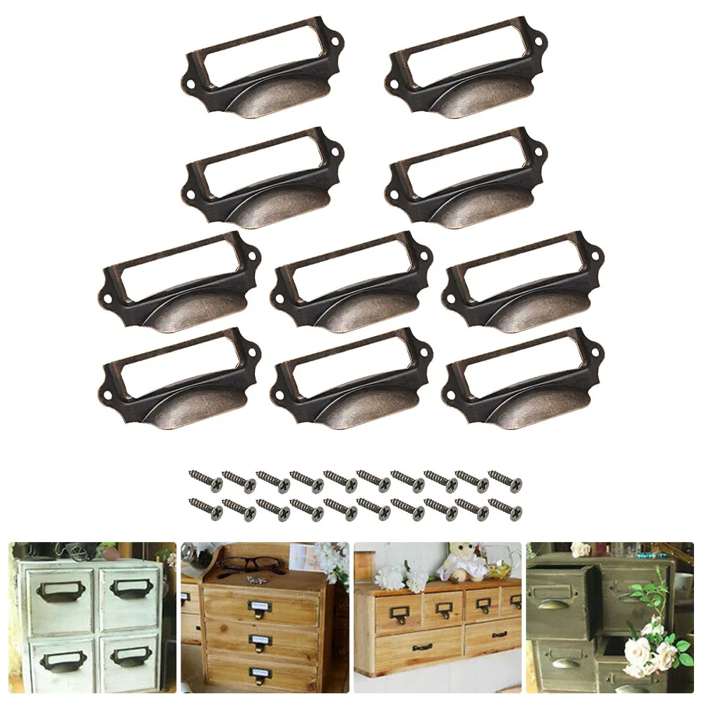 10pcs Retro Drawer Label Tag Pull Handle Jewelry Box Cabinet Frame File Card Holder For Furniture Cabinet Drawer Box Case Bin
