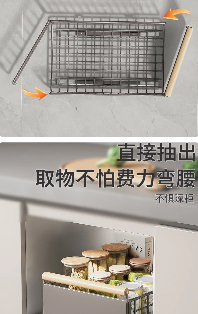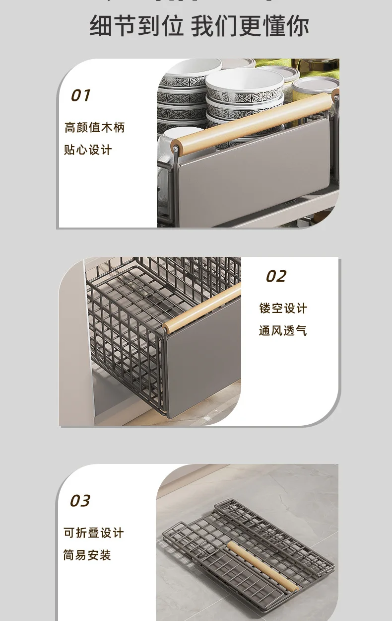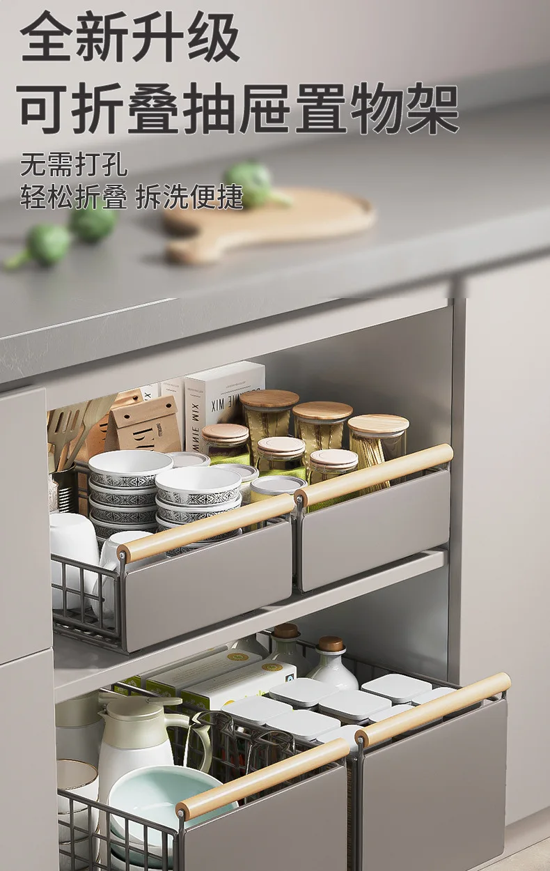 Kitchen Foldable Sink Pull-out Rack Cabinet Push-pull Retractable Basket Organizer Adjustable Slide Drawer Dish Storage Rack